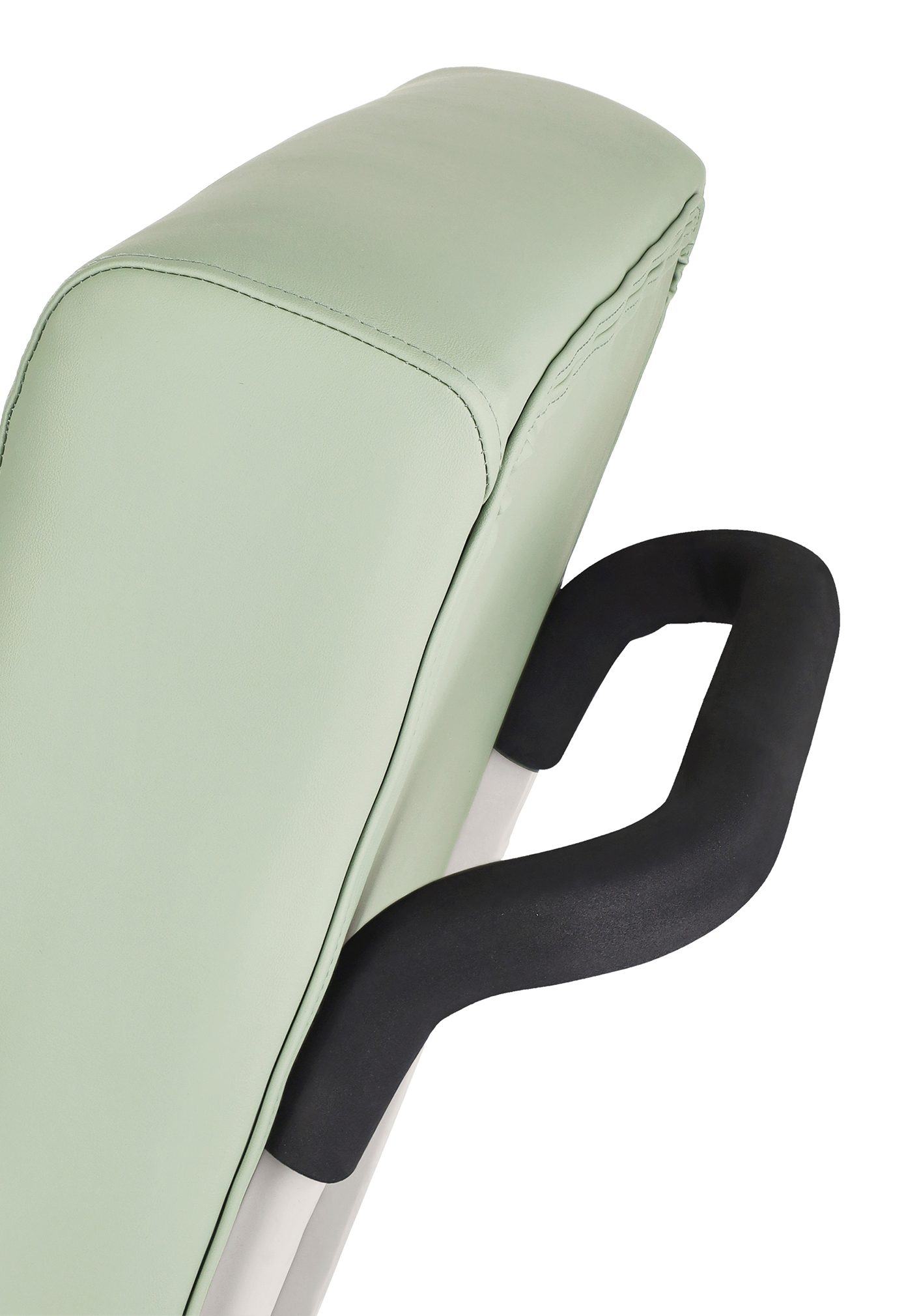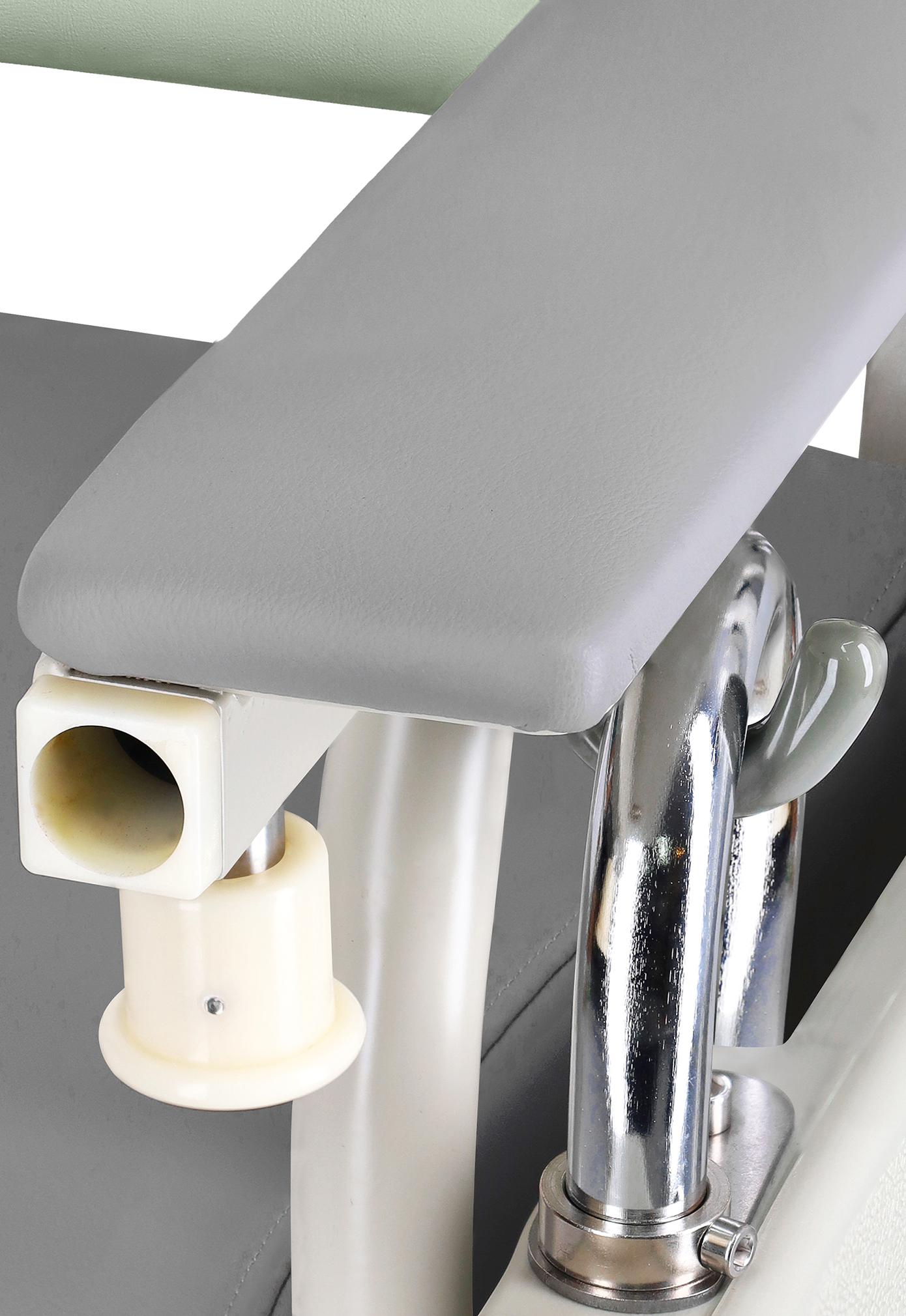 The push handle on a geriatric chair enhances the mobility of the chair by providing a firm and ergonomic grip to maneuver the chair